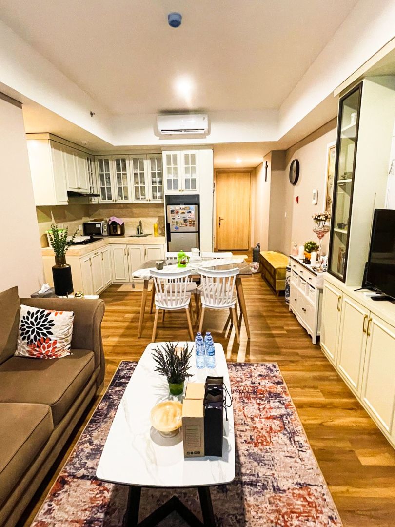 Sudah terdapat AC, Ranjang, lemari, tv, kitchen set, sofa, bangku dan meja makan, kulkas
