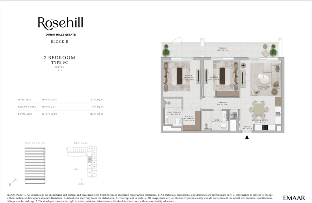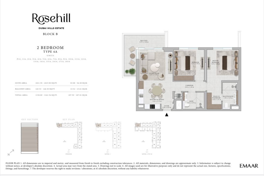 Jual Cicil 5 Tahun Apartemen Dubai Hills Estate Tower Rosehill Block B 2 Br 3A 110 m2 - Sell Apartment Dubai Hills Estate Rosehill 110 Sqm 2 Bedroom 3A By Emmar