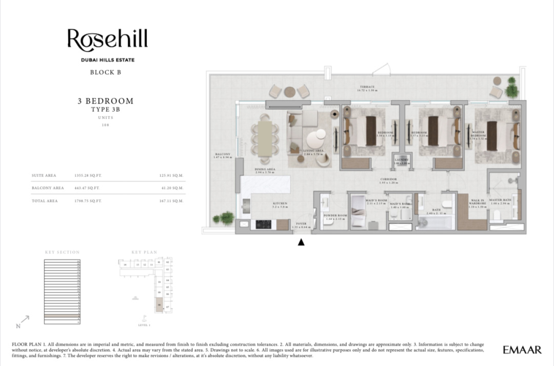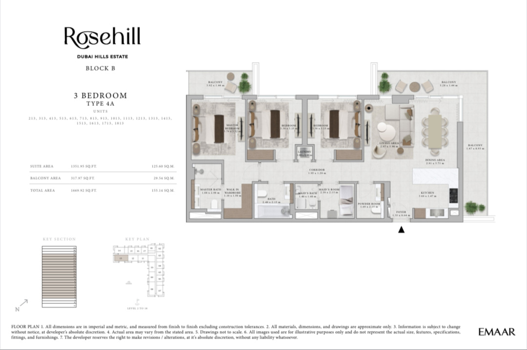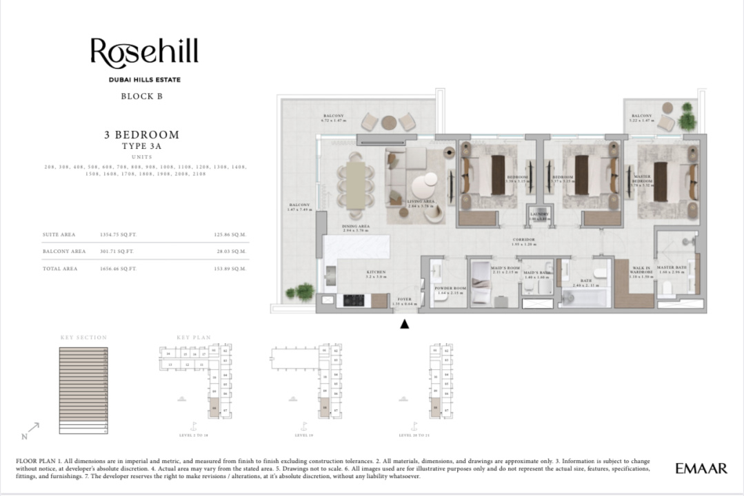 Jual Apartemen Dubai Hills Estate Tower Rosehill Block B 3 Br 4A 155 m2 - Sell Apartment Dubai Hills Estate Rosehill 155 Sqm 3 Bedroom 4A By Emmar