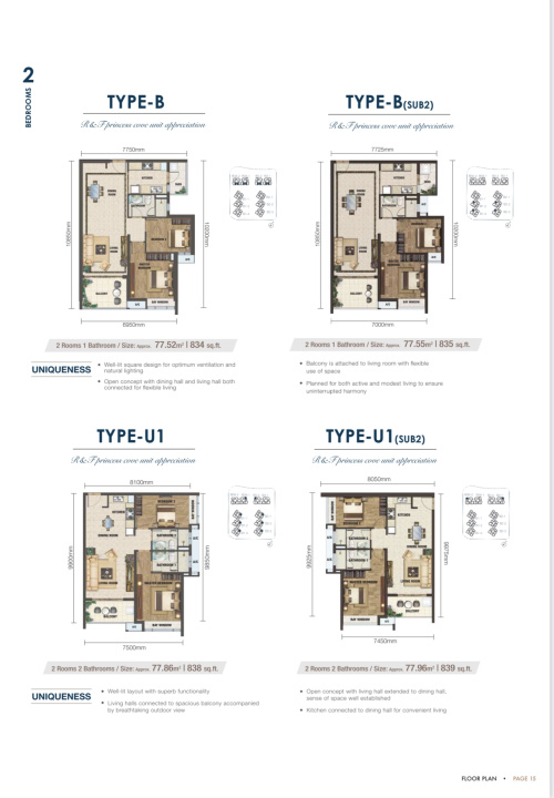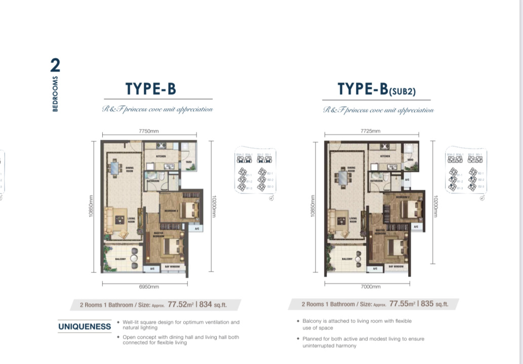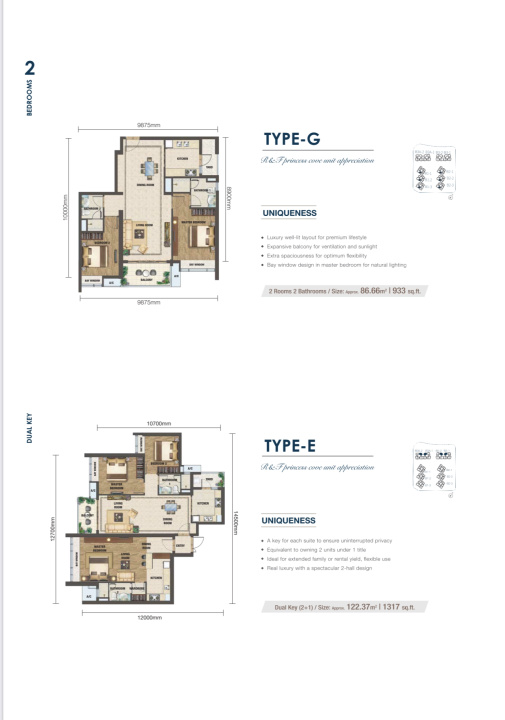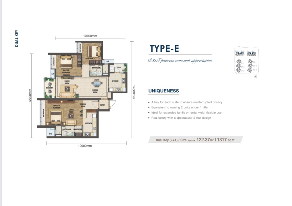 Bedroom: Type Dual Key E ( 2 Bedroom and 1 Bedroom )