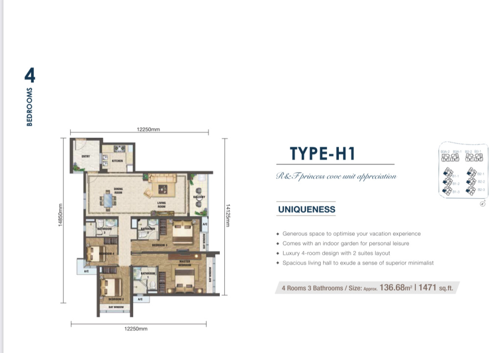 出售位于马来西亚柔佛州新山第二期 RNF Princess Cove 双钥匙 E 型公寓,面积 123 平方米