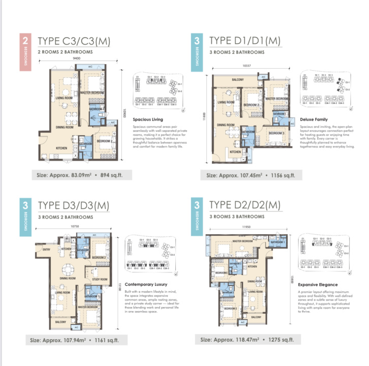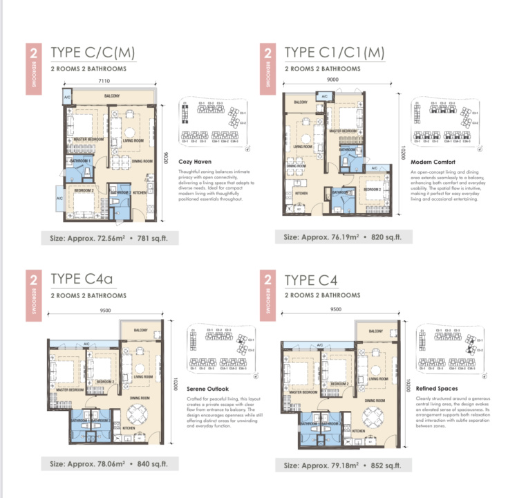 全新公寓 RNF Princess Cove 2 卧室 C3 户型 83 平方米 马来西亚柔佛州新山 第三期 高楼层