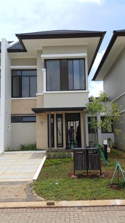 Rumah 2 lantai dengan 3 KT dan 2 KM, menghadap ke taman