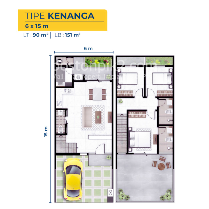 Luas Tanah: 90 m2 ( 6x15 )