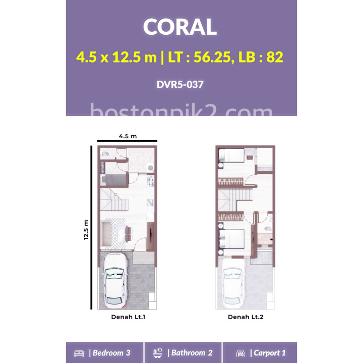Luas Tanah: 57 m2 ( 4,5x12,5 )