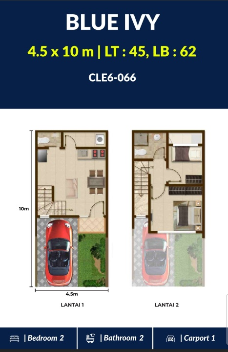 Luas Tanah: 45 m2 ( 4,5x10 )