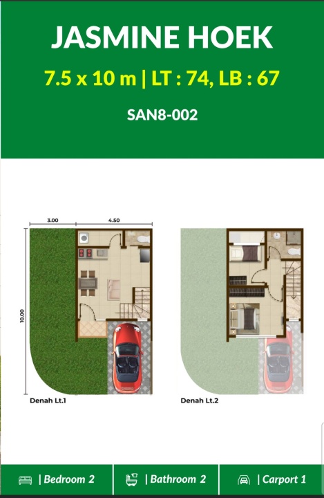 Luas Bangunan: 67 m2 ( 2 Lantai )