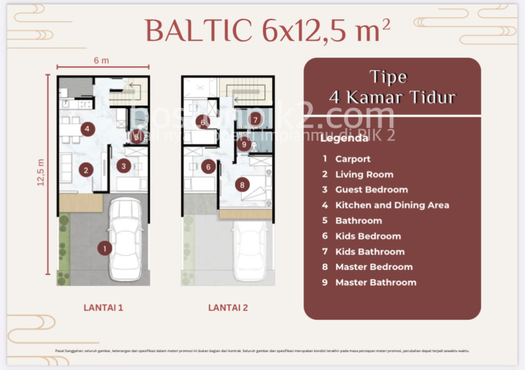 Luas Tanah: 87,5 m2 (6x12,5 Hoek)