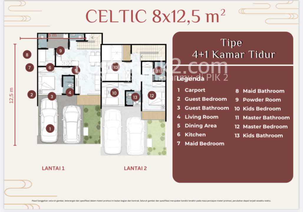 Luas Tanah: 111,7 m2 (8x12,5 Hoek)