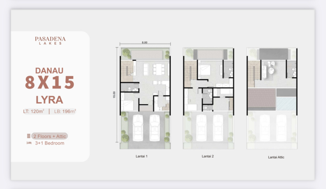 Land / Luas Tanah: 120 m2 (8x15 Danau)