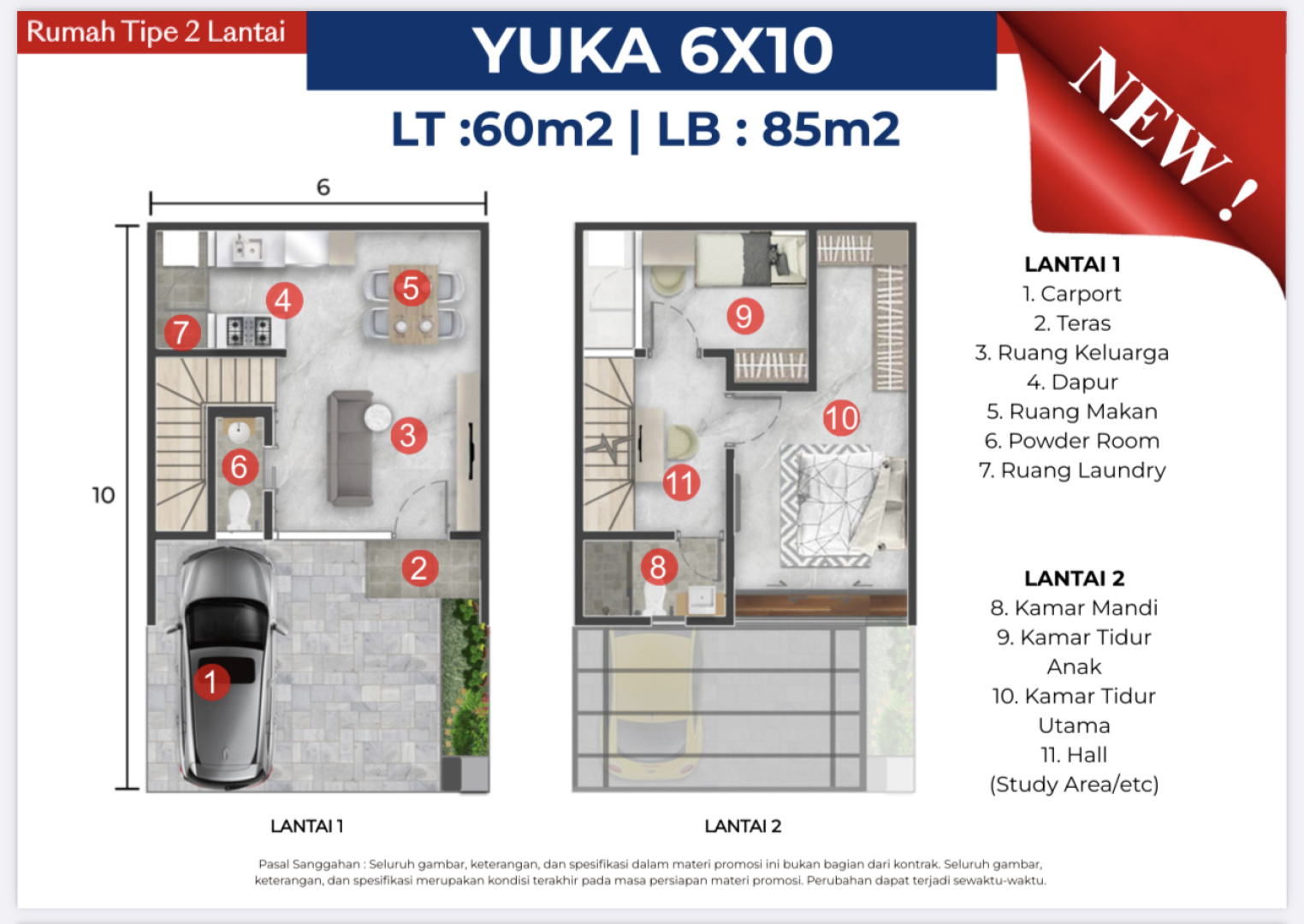 Land / Luas Tanah: 60 m2 (6x10 Yuka)