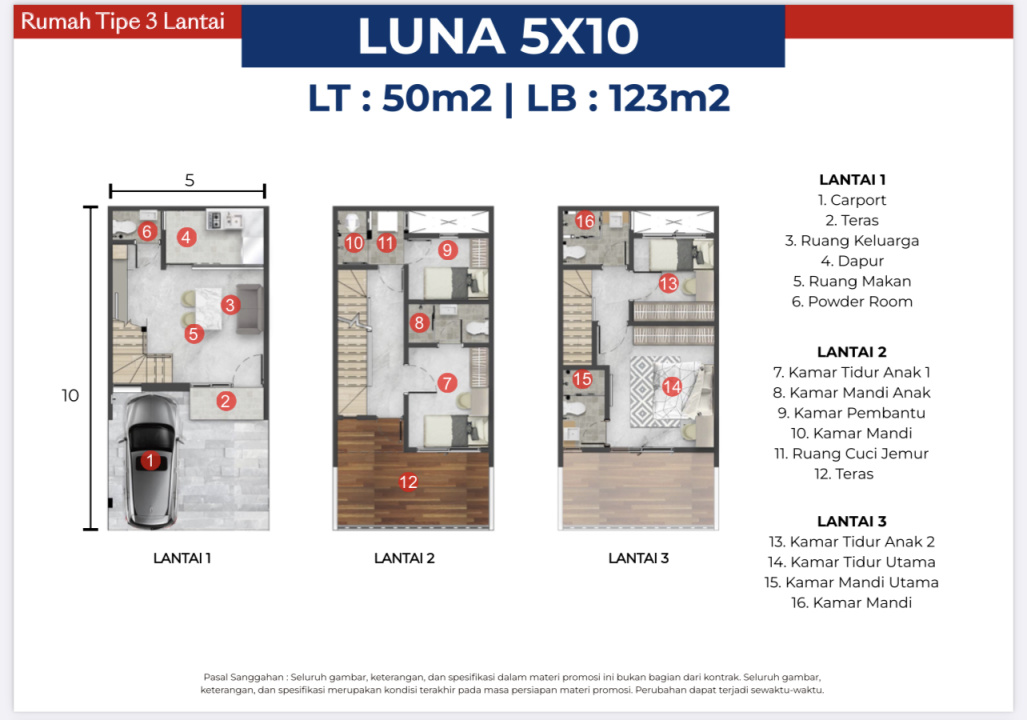 Land / Luas Tanah: 50 m2 (5x10 Luna)