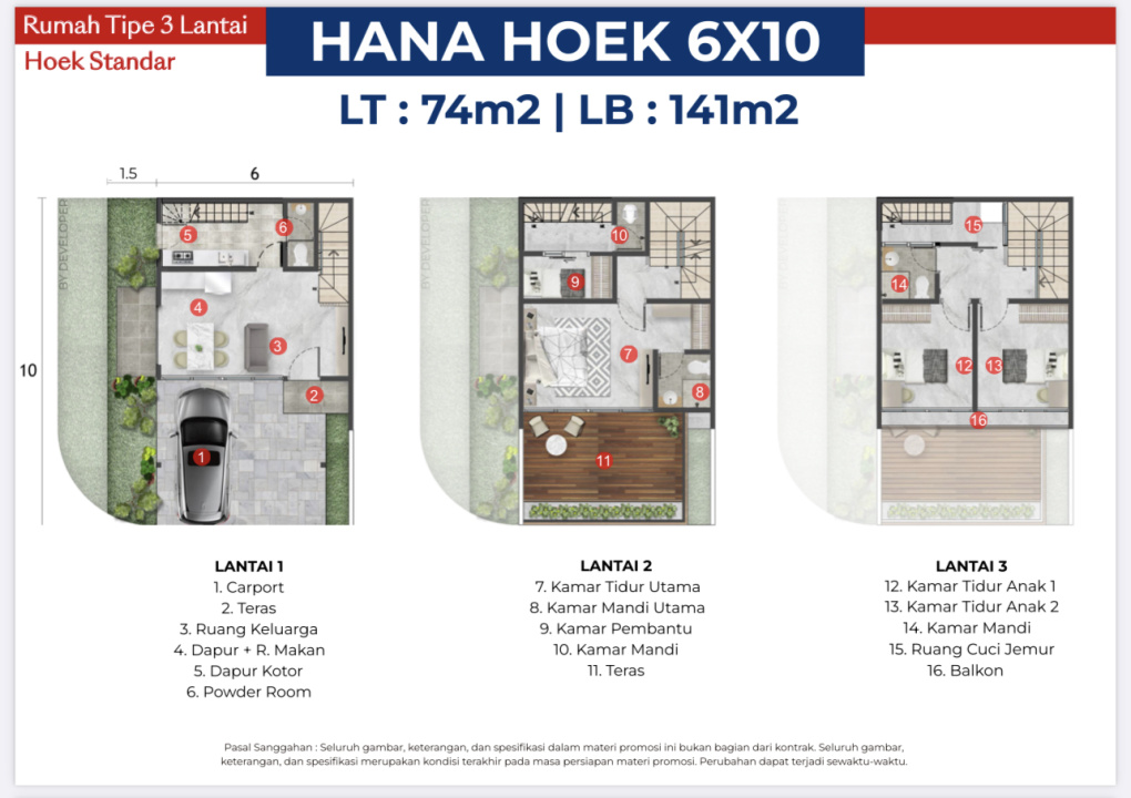 Building / Luas Bangunan: 141 m2 (3 Lantai)
