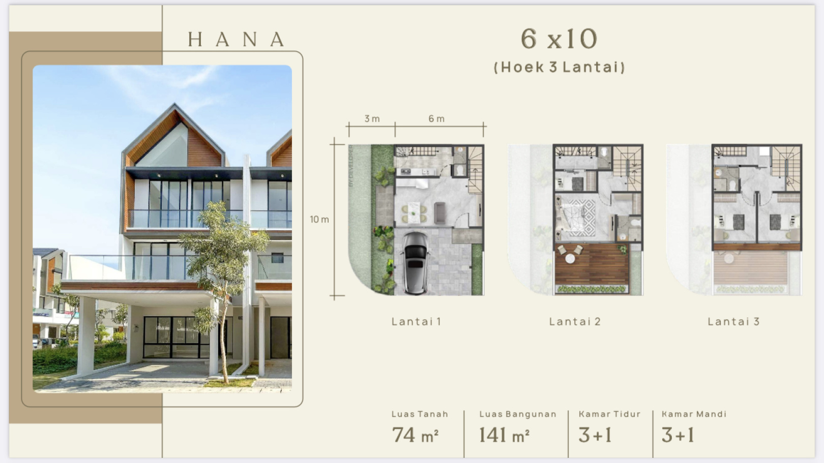 Land / Luas Tanah: 75 m2 (7,5x10 Hana)