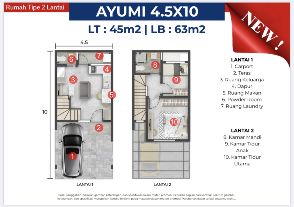 Land / Luas Tanah: 45 m2 (4,5x10 Ayumi)