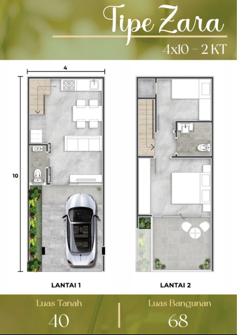 Land / Luas Tanah: 40 m2 ( 4x10 )