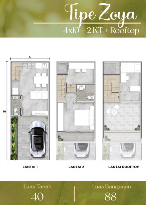 Land / Luas Tanah: 50 m2 ( 5x10 Corner )