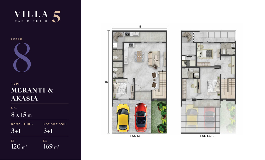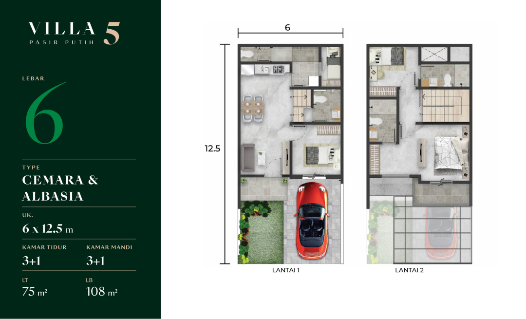 Land / Luas Tanah: 111,5 m2 ( 9x12,5 Cemara corner )