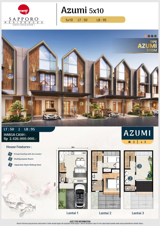 Land / Luas Tanah: 50 m2 ( 5x10 Azumi )