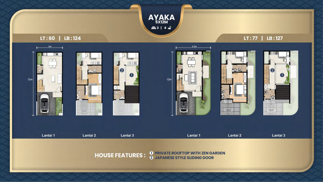 Land / Luas Tanah: 77 m2 ( 6,5x12 Ayaka Corner )