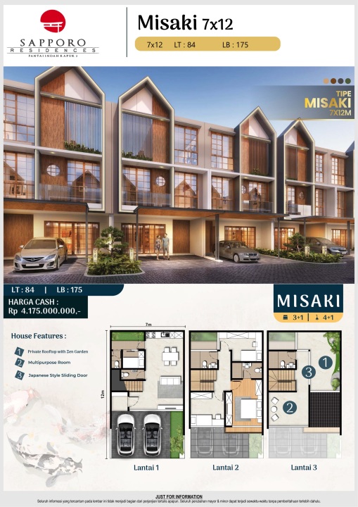Land / Luas Tanah: 84 m2 ( 7x12 Misaki )