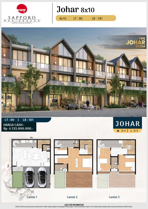 Jual Cicil 26 Juta atau 3,6m Rumah Sapporo Residences 8x10 Johar 3 Lantai Samping Pasir Putih Villa Pik2 - Sell House Sapporo 80 Sqm 8x10 Johar 3 Floor Side of Pasir Putih Villa Pik 2