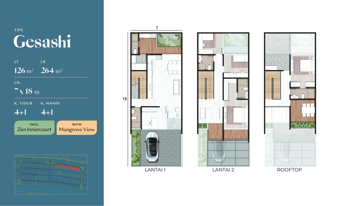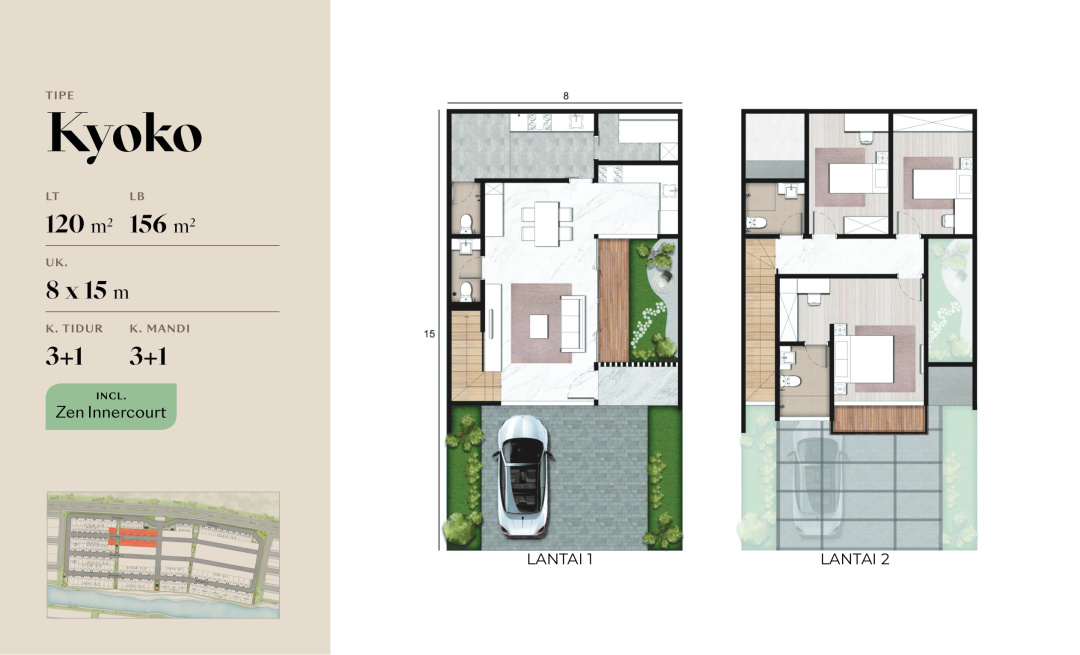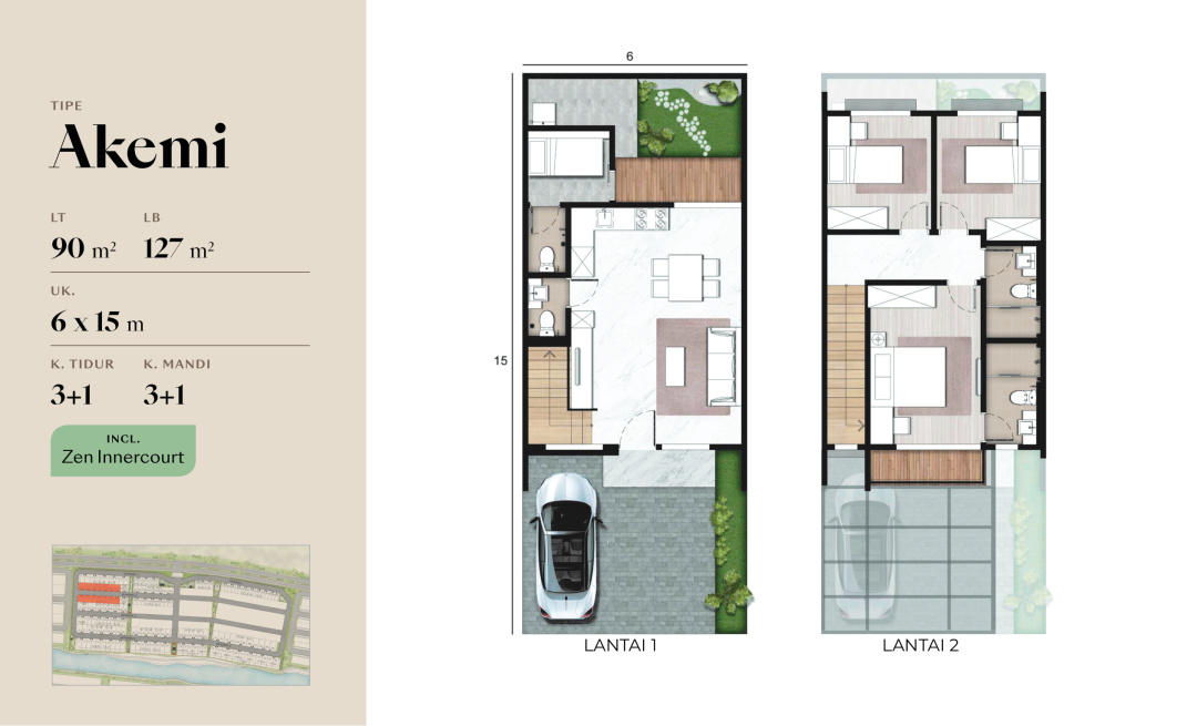Land / Luas Tanah: 90 m2 ( 6x15 Akemi Badan )