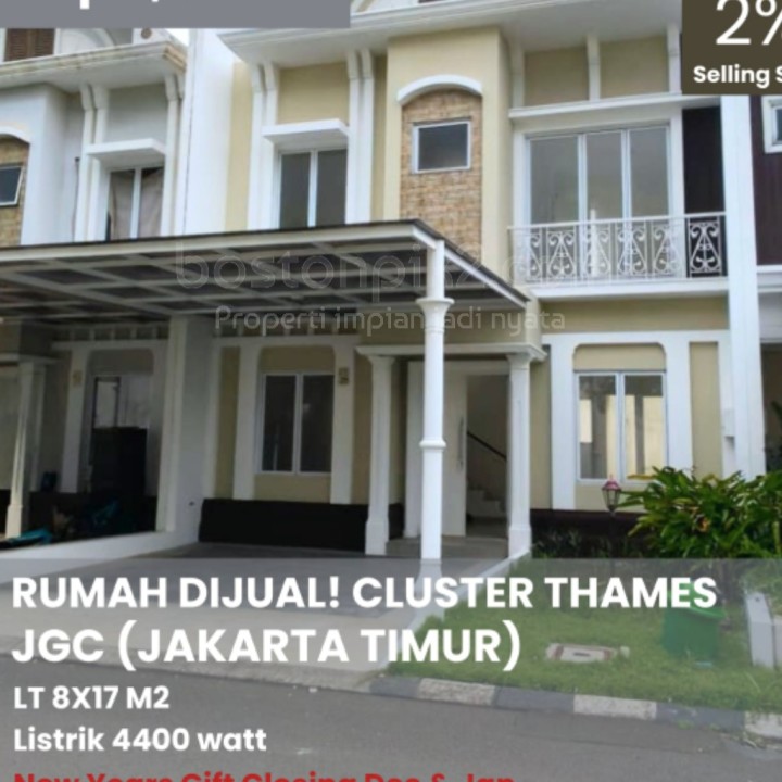 JUAL RUMAH CLUSTER THAMES JGC JAKARTA TIMUR 8x17 m2 3+1 BR 2 LANTAI