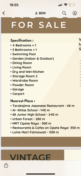 出售位于雅加达南部 Pasar Minggu 的 Eleven Townhouse 联排别墅,面积 371 平方米(10x37 英尺)。