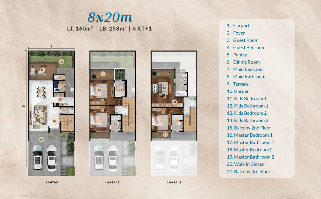 Building / Luas Bangunan: 258 m2 ( 3 Lantai )