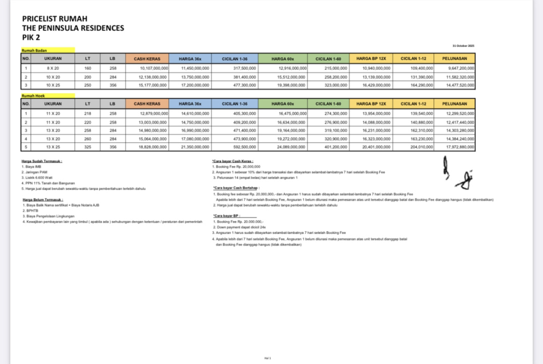 Cicil 119 Juta atau 11m Rumah 11x20 Hoek Peninsula Residence Pik2