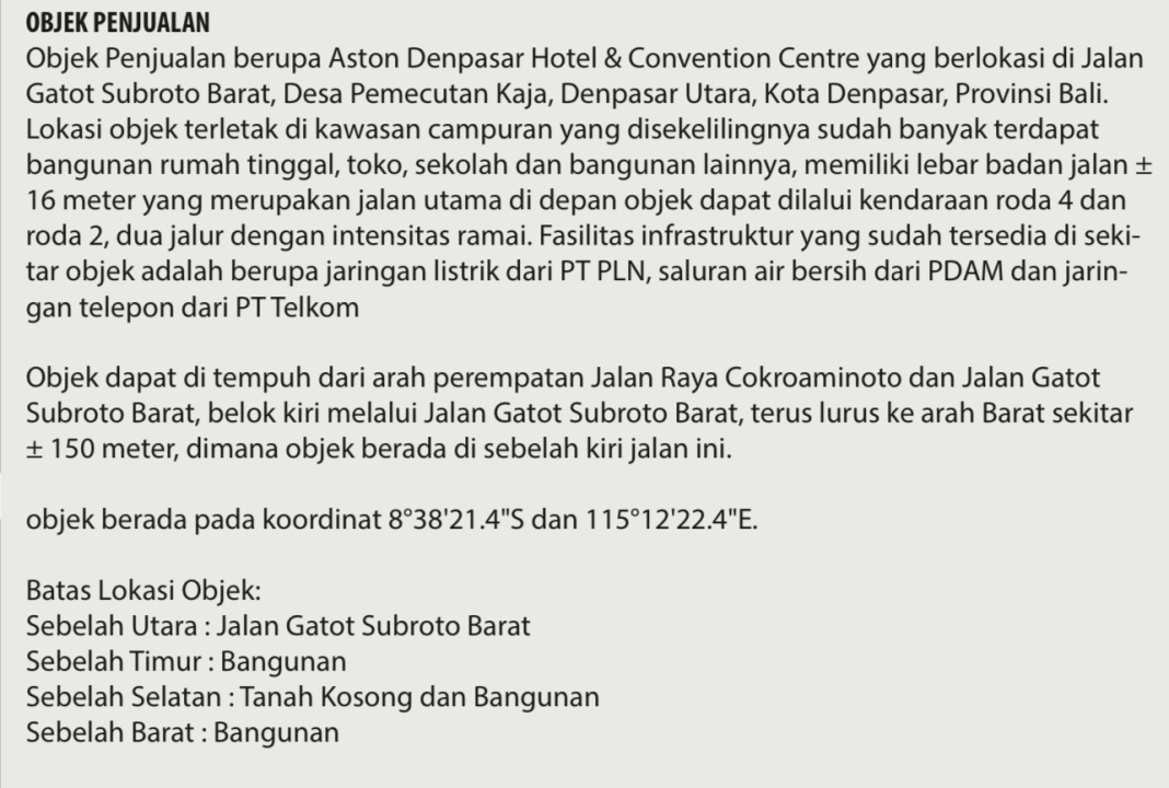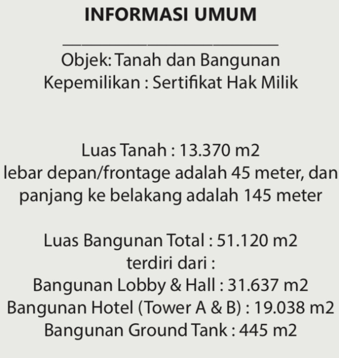 Jual Hanya 20 Juta Hotel Aston Denpasar Bintang 4 15000 m2 1,5 Ha 45x145 Via Lelang - Sell Aston Hotel Denpasar Building 50000 m2 45x145 4 Star