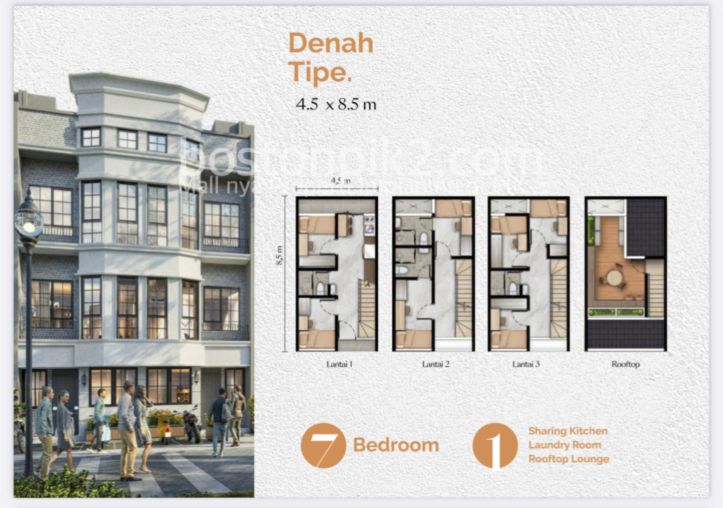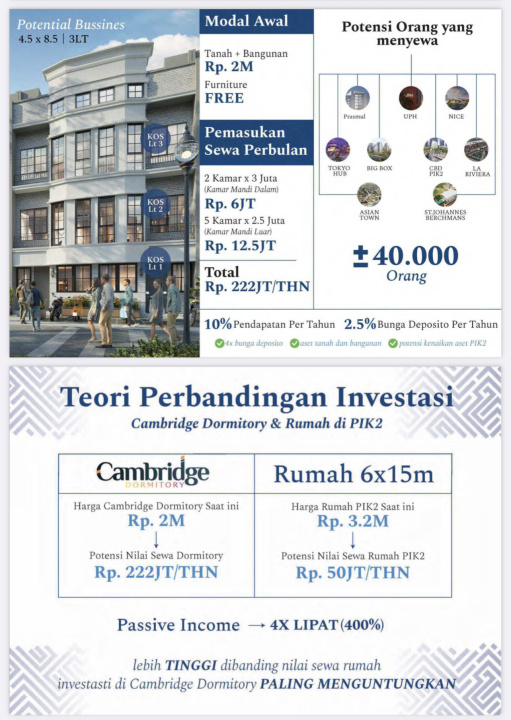 Jual Cicilan 12 Juta Rukan Ruko Kost Cambridge Dormitory 4,5x8,5 Hoek LB 130 3 Lantai Program Dp 0% Selama 24 Bulan