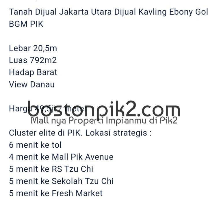 Terletak di Pantai Indah Kapuk 2, tanah ini memberikan kemudahan akses ke berbagai fasilitas menarik.