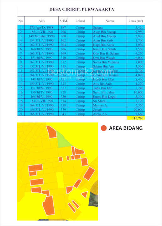 - Desa Ciririp Kec Sukasari: 110.700 m2