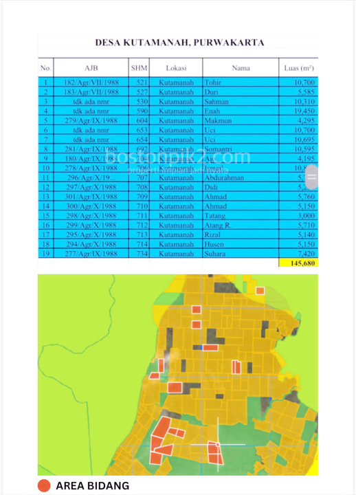 - Kutamanah Kec Sukasari: 145.560 m2