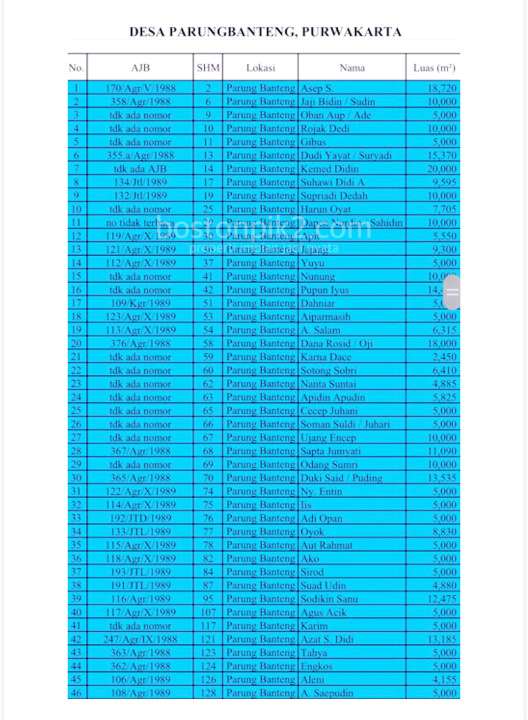 - Parungbanteng Kec Sukasari: 668.625 m2