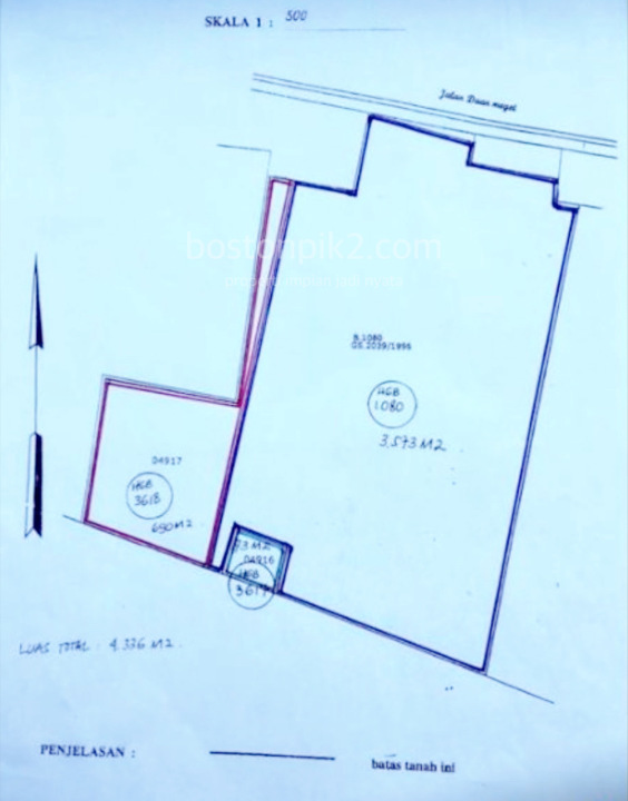 Land / Luas Tanah: 4336 m2 (3 Sertifikat HGB Murni)