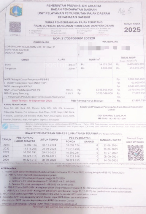 Jual Dibawah Njop Tanah 345 m2 Jl Pemadam Duri Pulo Gambir Jakarta Pusat