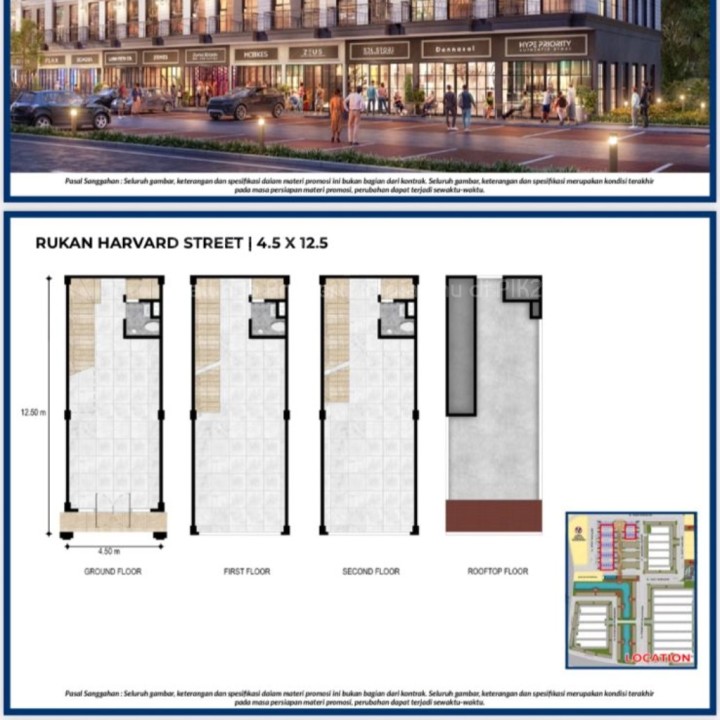 SEWA RUKAN HARVARD STREET 1 PIK2 4,5x12,5 m2 3 LANTAI + ROOFTOP