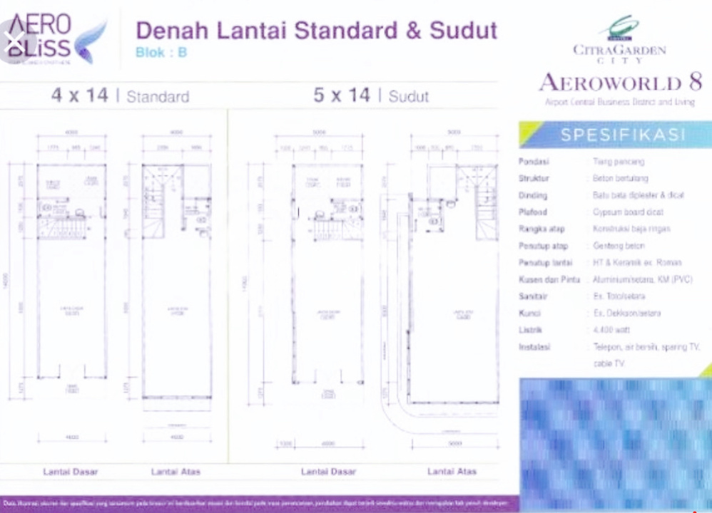 出售:Aerobliss Citra Garden 8 4x12户型,两层,Indomaret对面