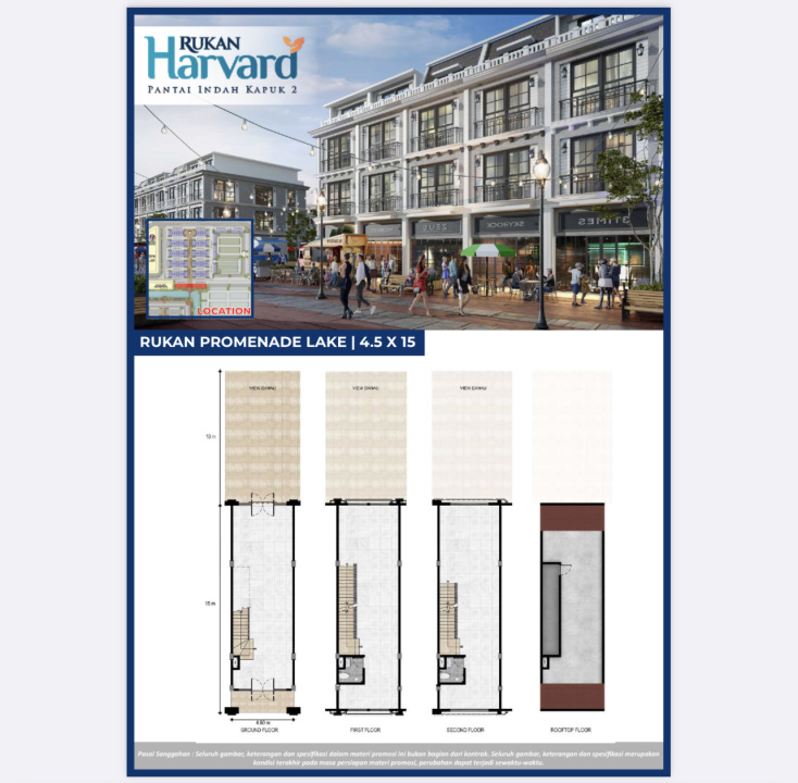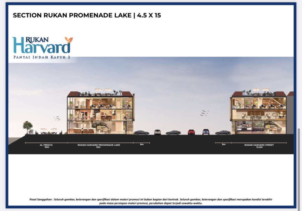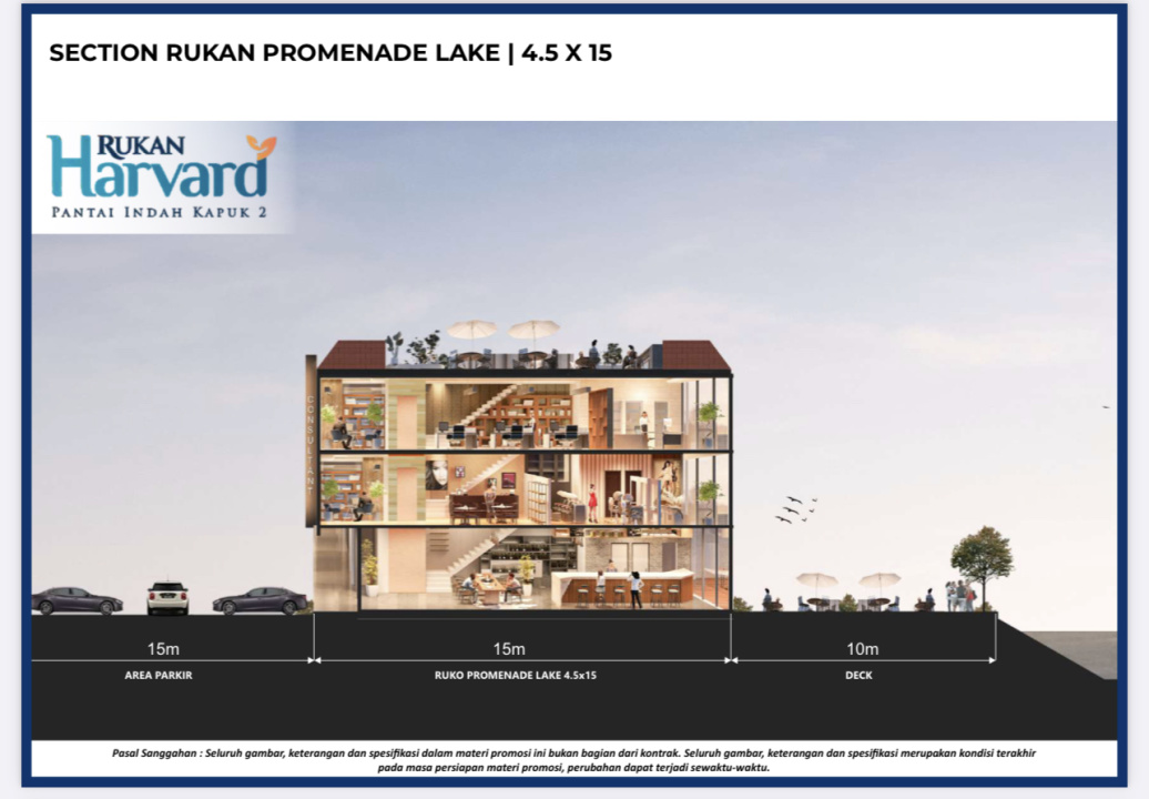 Jual Cicilan 48 Juta Rukan Harvard Promenade Lake PIK 2 4,5x15 67,5 m2 3 Lantai Program Dp 0% Selama 24 Bulan