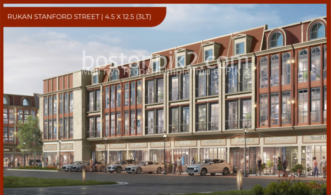 Jual Cicilan 73 Juta Rukan Ruko Stanford Street PIK 2 4,5x12,5 LB 197 m2 3 Lantai Program Dp 0% Selama 5 Tahun