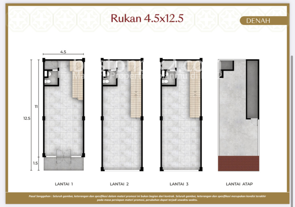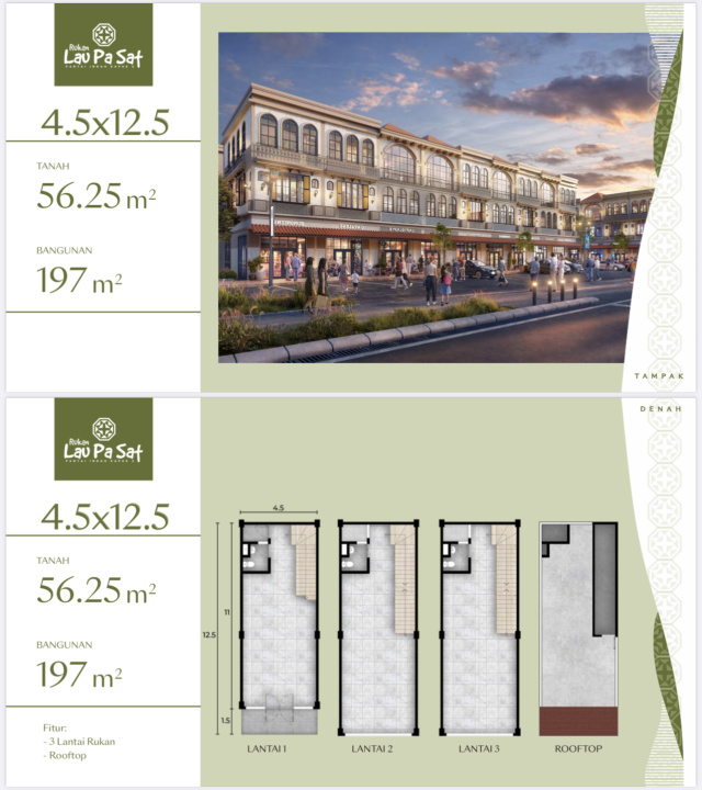 Luas Tanah: 56,25 m2 (4,5x12,5)
