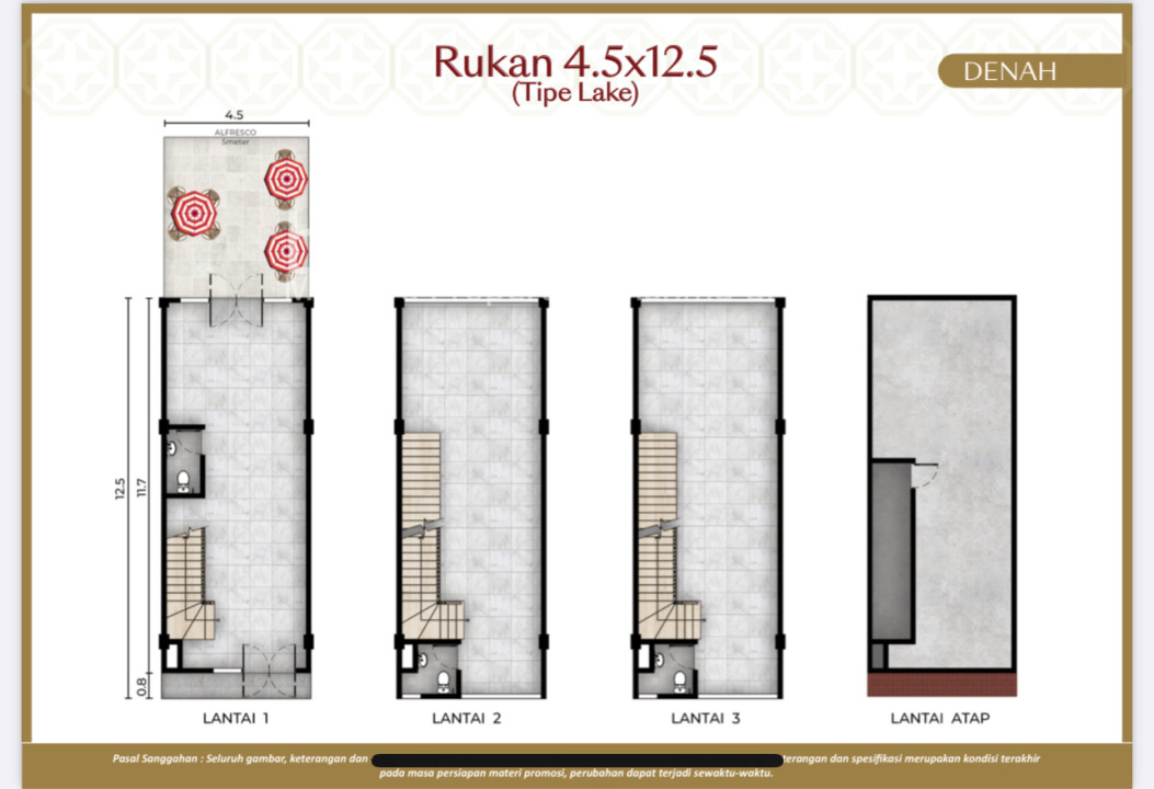 Luas Bangunan : 197 m2 ( 3,5 Lantai )