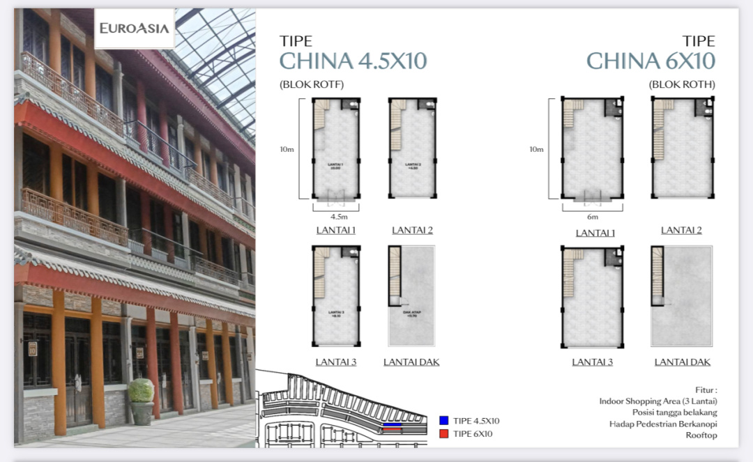 Hanya 27 Juta atau 3,4m Jual Rukan Euro Asia 4,5x10 China Osaka Samping Taman Doa Akita Pik 2 - Sell Shophouse 4,5x10 Type China 3 Floor Pik2 Near Lady of Akita