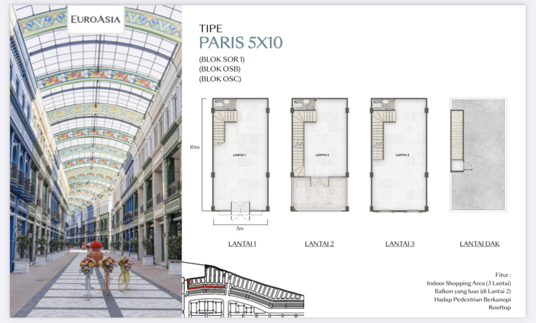 Hanya 28 Juta atau 3,7m Jual Rukan Euro Asia 50 m2 5x10 Paris Osaka Samping Taman Doa Akita Pik 2 - Sell Shophouse 5x10 Type Paris 3 Floor Pik2 Near Lady of Akita