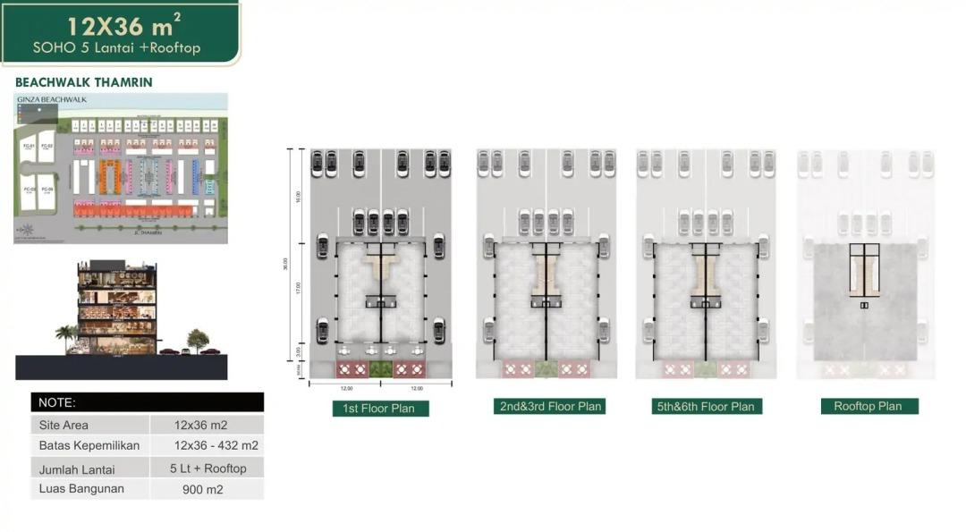 Jual Soho Ginza Beachwalk LT 12x36 (432) m2 LB 900 m2 5 Lantai + Rooftop