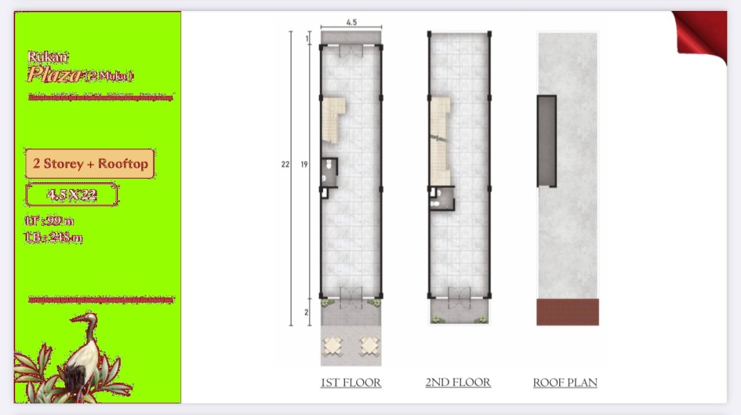 Land / Luas Tanah: 99 m2 (4,5x22 Plaza 2 Muka)