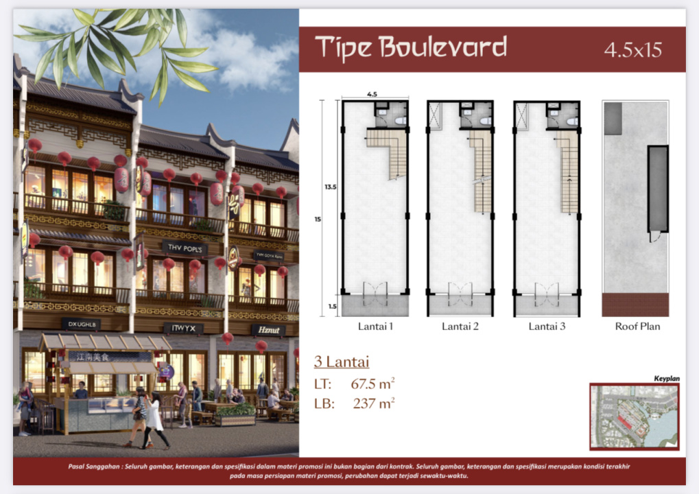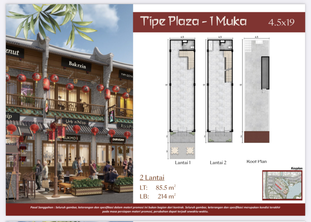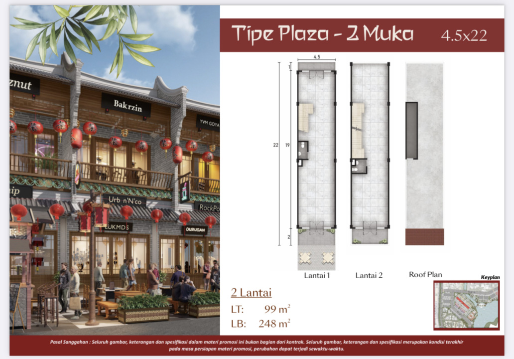 Land / Luas Tanah: 99 m2 (4,5x22 Plaza 2 Muka Corner)